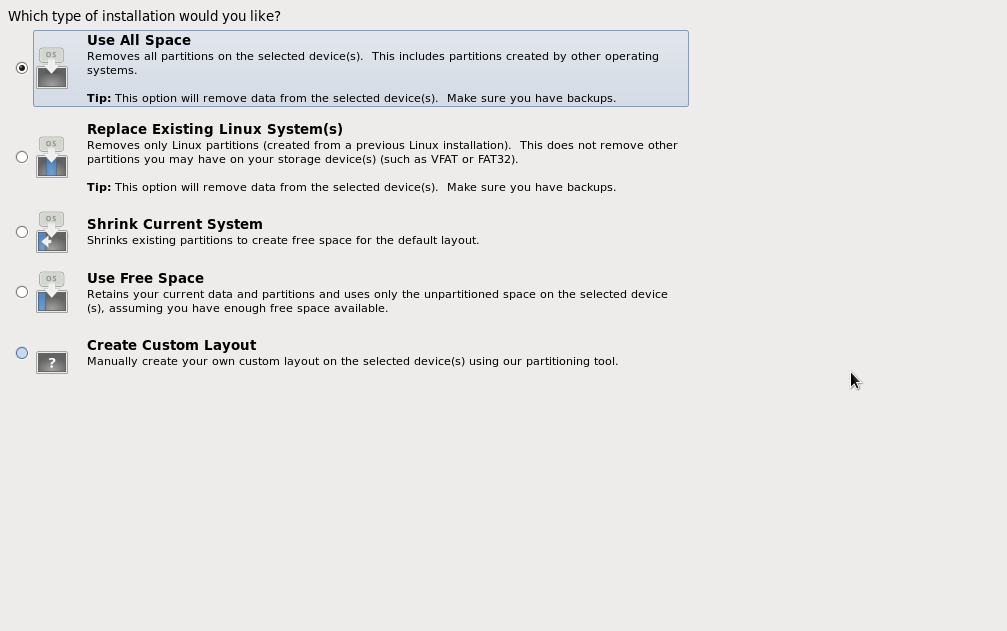 22.安装空间选择,初次安装可以选择all space