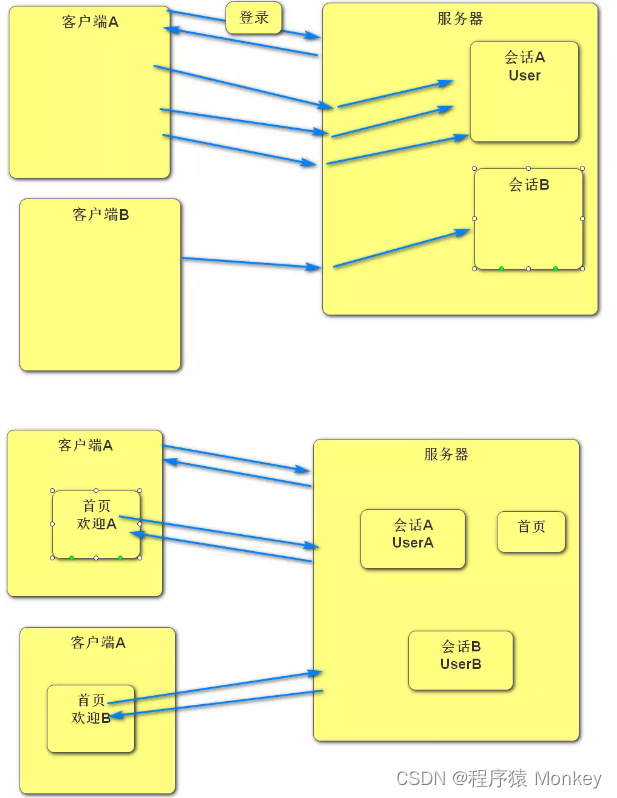 - 在登录成功时,将当前登录成功的用户对象保存到会话对象中, 之后的请求如果需要判断是否登录或者需要用到当前登录的用户信息的话,直接从Session会话对象中获取即可.