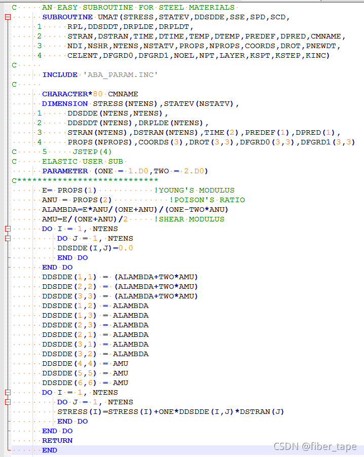 SUBROUTINE UMAT(STRESS,STATEV,DDSDDE,SSE,SPD,SCD,