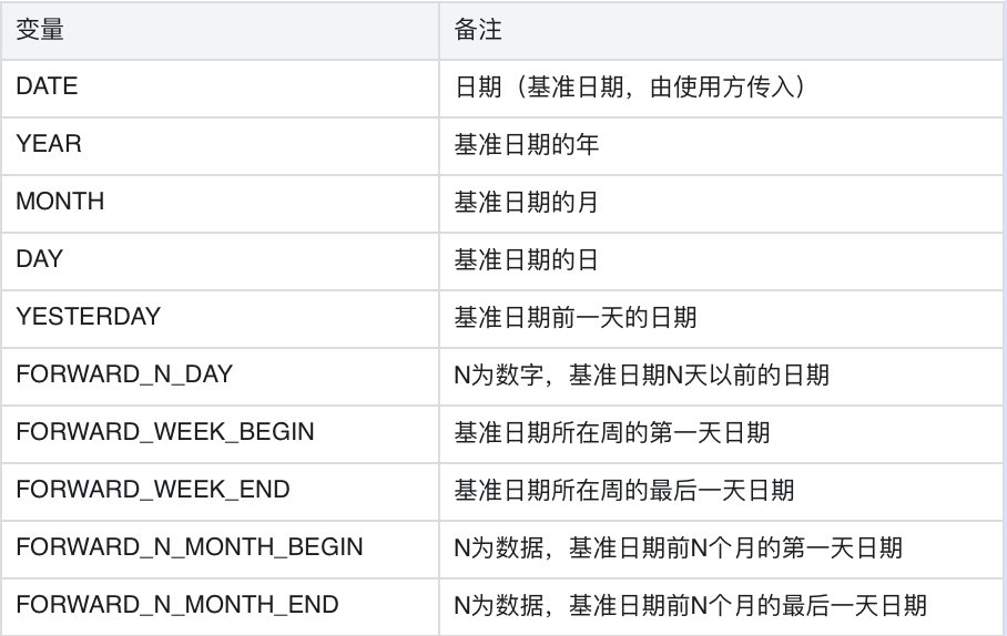 目前,离线框架所支持的常用环境变量如下表所示。