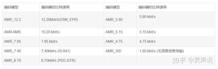 - 种类:AMR又分为两种,一种是AMR-NB(AMR-NarrowBind),语音带宽范围:300-3700Hz,8KHz采样频率;另外一种是AMR-WB(AMR WideBand),语音带宽范围50-7000Hz,16KHz采样频率。但考虑语音的短时相关性,每帧长度均为20ms。