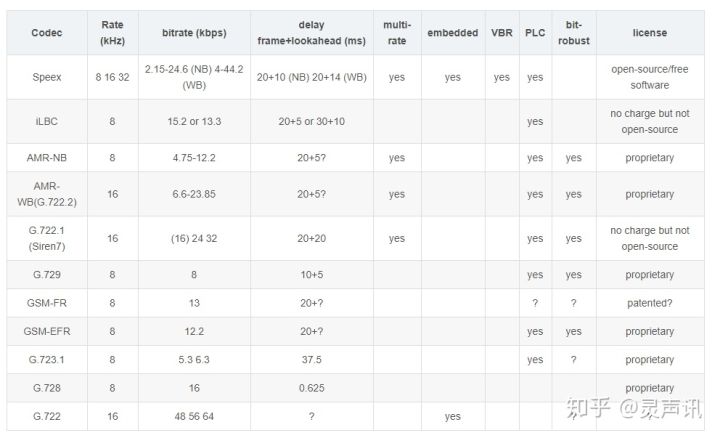 - 采样率支持:16khz,24khz,32khz(webrtc中代码)支持ABR,VBR和CBR:10kbps ~ 52kbps自适应包大小:30~60ms