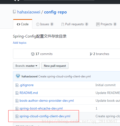 由于是从远程获取的配置信息,所以我们需要把配置信息放到远程仓库里面,文件名字为:spring-cloud-config-client-dev.yml