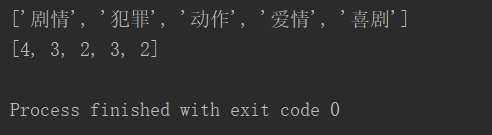 dict = {'剧情': 4, '犯罪': 3, '动作': 2, '爱情': 3, '喜剧': 2}