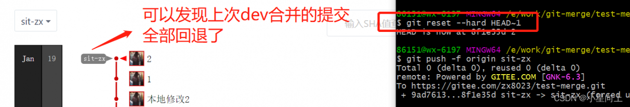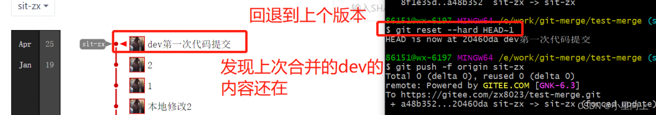 回退上个版本: 发现并没有回到退sit之前的提交,而是回退到了dev的上次提交
