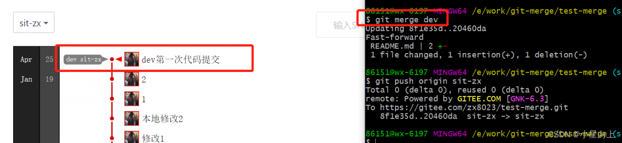 合并操作: 生成了新的提交Merge branch 'dev' into sit