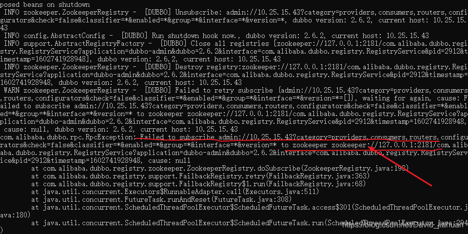 因为Dubbo是跟zookeeper配合使用的呀,Dubbo启动后需要连接zookeeper的服务,而我们zookeeper的服务还没有启动,那当然Dubbo找不到zookeeper,也就启动不成功了呀!