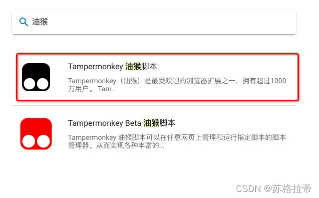 由于Chrome插件在国内无法访问,所以可以访问:极简插件网站下载 或者Crx4Chrome - Download CRX for Chrome Apps & Extensions,搜索油猴下载