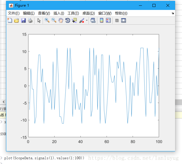 也可以用上图中的变量向量ScopeData.signals(1).values在matlab中引用: