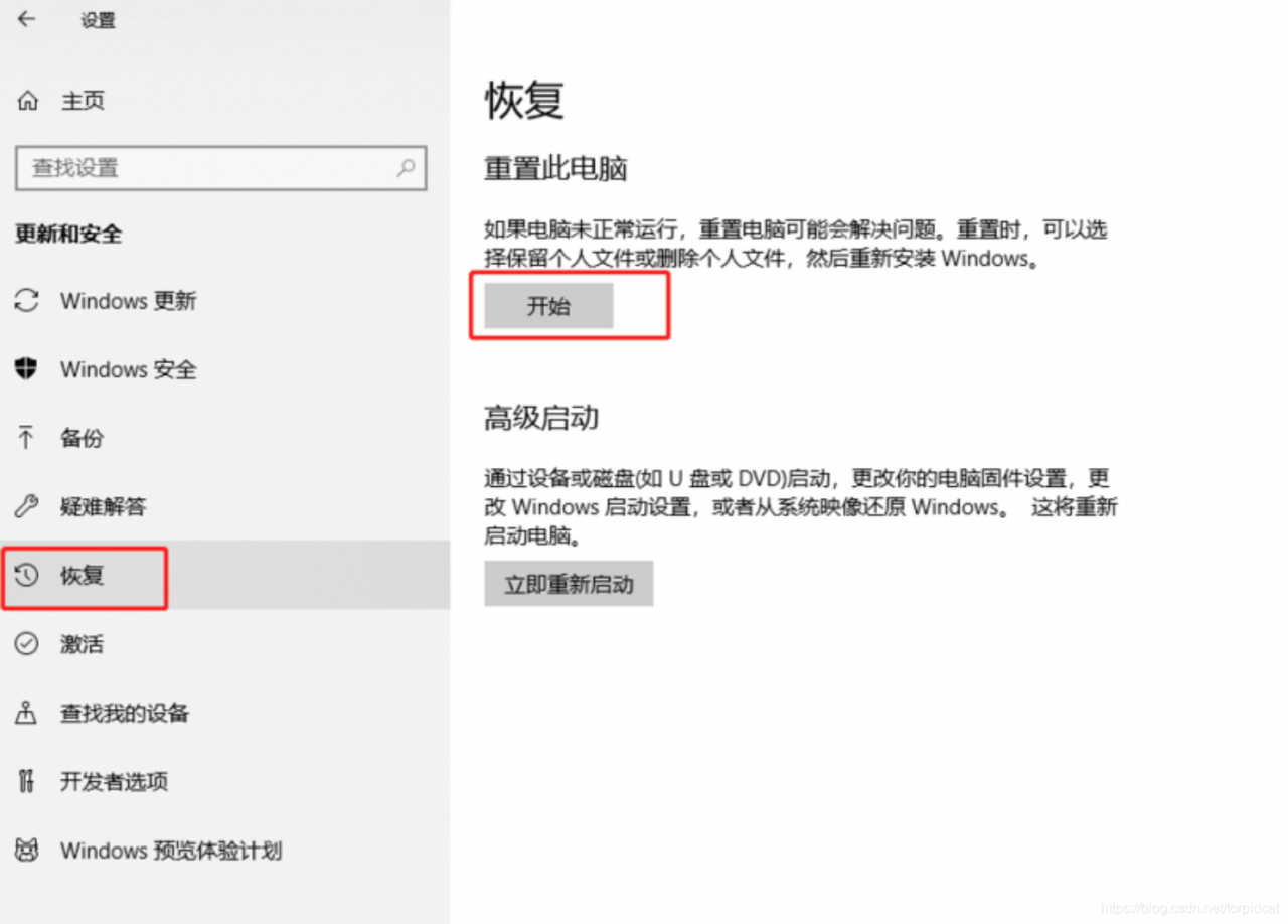「恢复」- 「开始」
