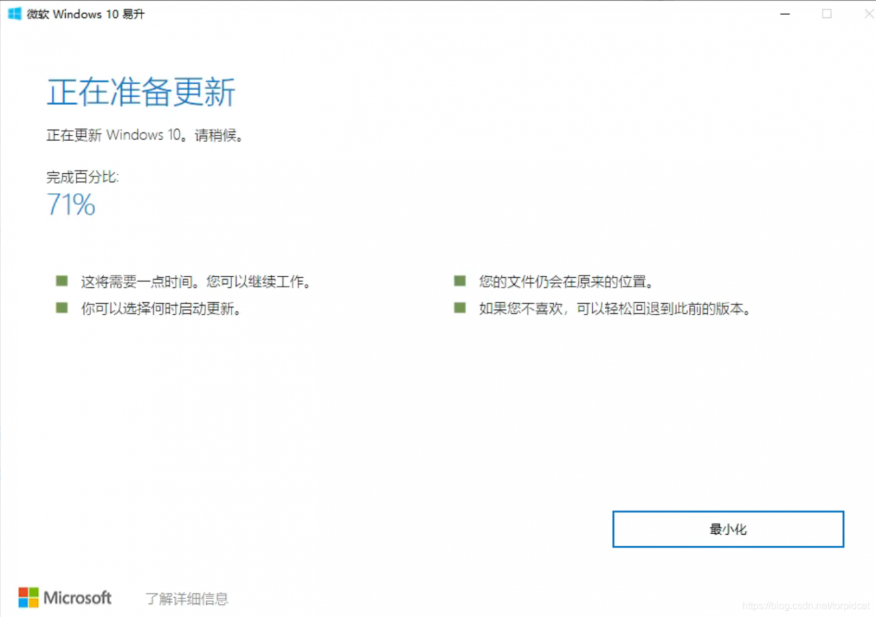 下载windows的更新软件,然后运行下载的软件,一路下一步就行,软件使用时需要去官方下系统,过程有点慢,耐心等待,跟着界面提示操作就好了。