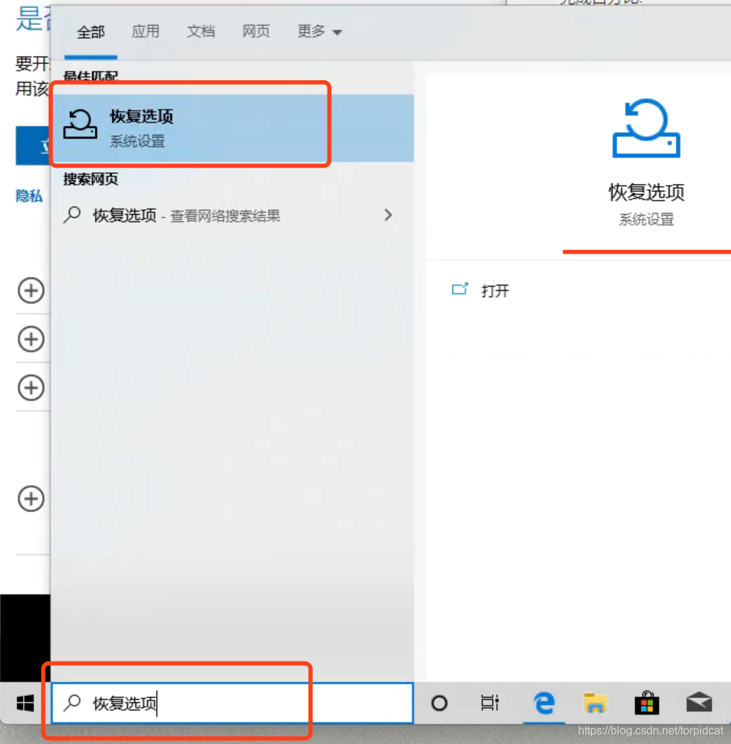1. 想恢复Win10系统为出厂设置(格式化当前电脑,重做系统),「控制面板/设置/桌面工具栏左下角」 搜 「恢复选项」
