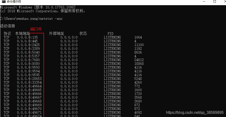 cmd命令行输入:netstat -ano