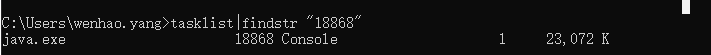 cmd命令行输入:tasklist|findstr "18868"