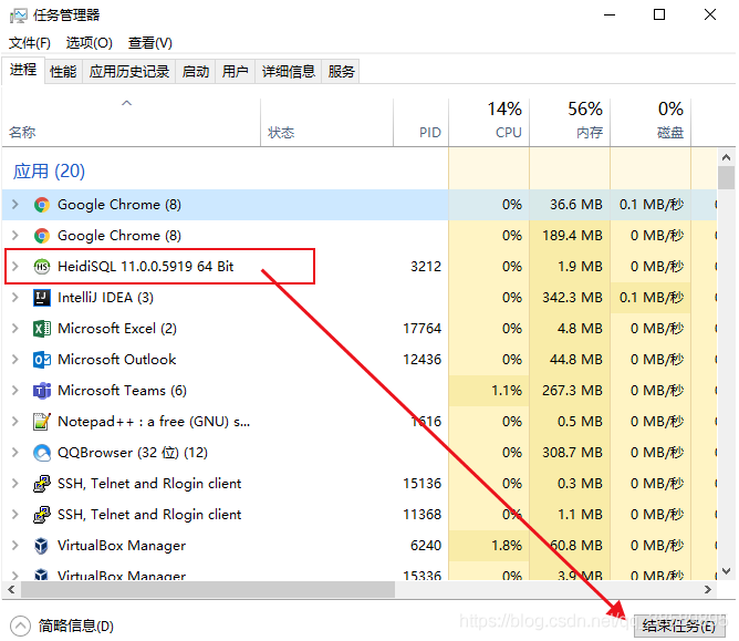 二、使用任务管理器结束占用端口的进程