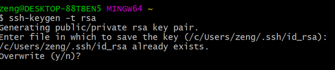进入到目录/c/Users/zeng/.ssh/中拿到生成的证书id_rsa,用scp传给linux