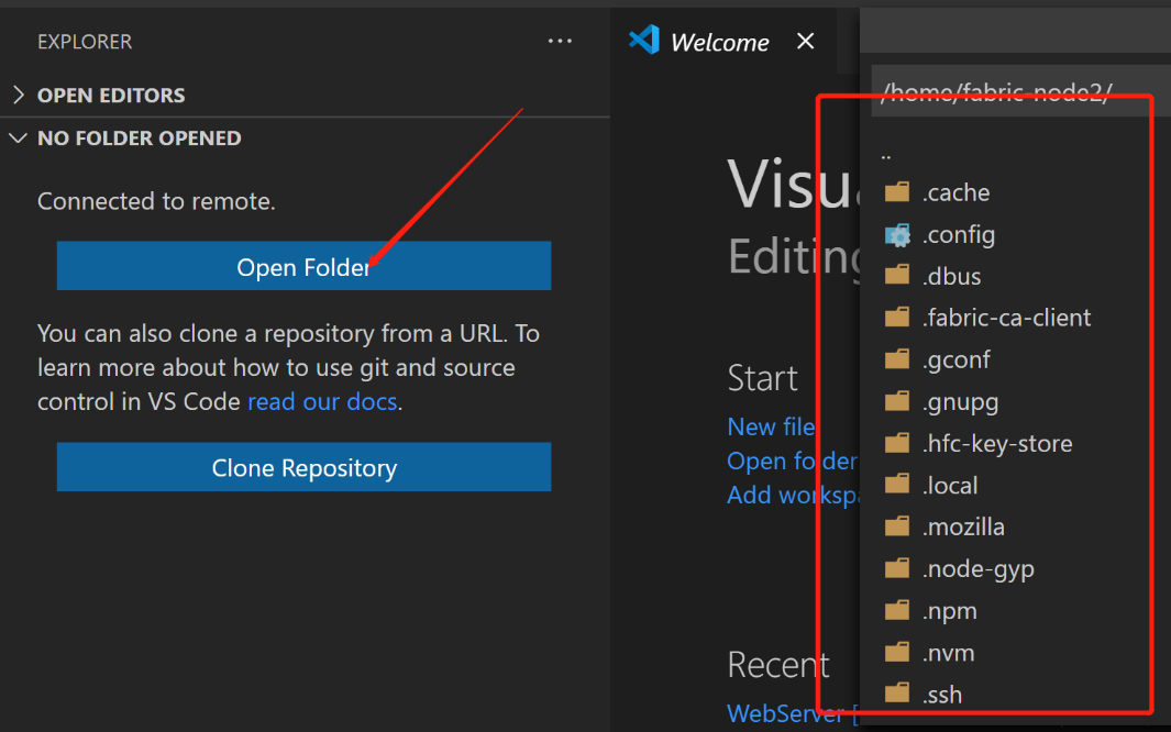 右边新增,会提示选择系统,填入linux,然后Open Folder,下拉框就是远程linux所以的文件了