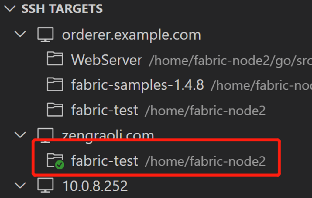 Host相当于别名,在侧边栏显示的名字,HostName是远程终端的ip,任意修改一个Host为zengraoli.com,可以看到侧边出现如下