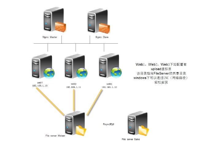 从上图可看出,整个Web服务器架构已经具备“可扩展、高可用”了,主要问题和瓶颈都集中在多台服务器之间的文件同步上。