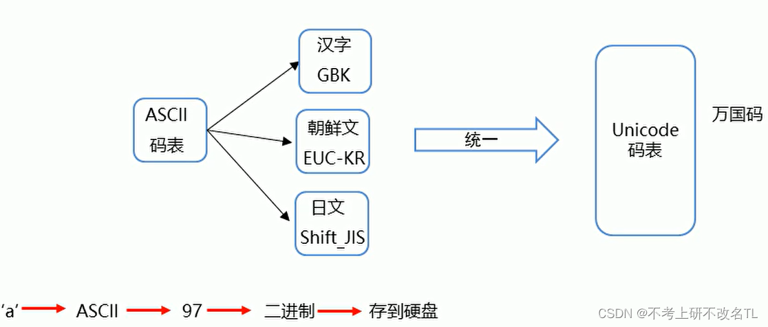 ASCII:是基于拉丁字母的一套电脑编码系统,用于显示现代英语,主要包括控制字符(回车键、退格、换行键等)和可显示字符(英文大小写字符、阿拉伯数字和西文符号)