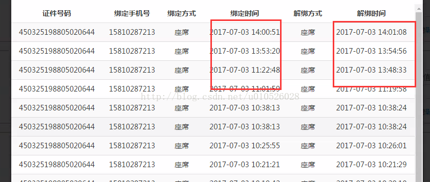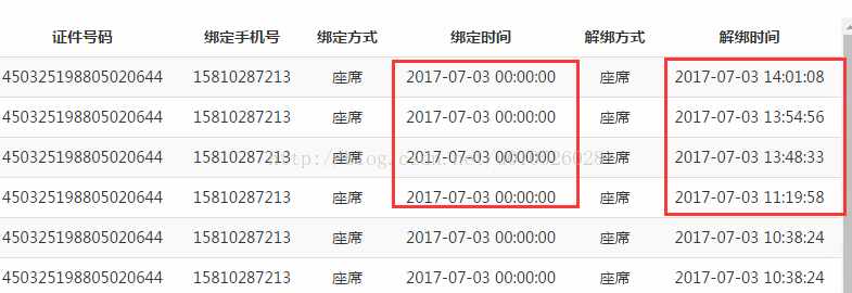 以绑定时间和解绑时间为例: