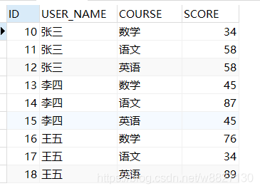 union select user_name, '数学' COURSE, MATH_SCORE as SCORE from grade