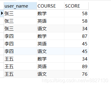 union select user_name, '英语' COURSE, EN_SCORE as SCORE from grade
