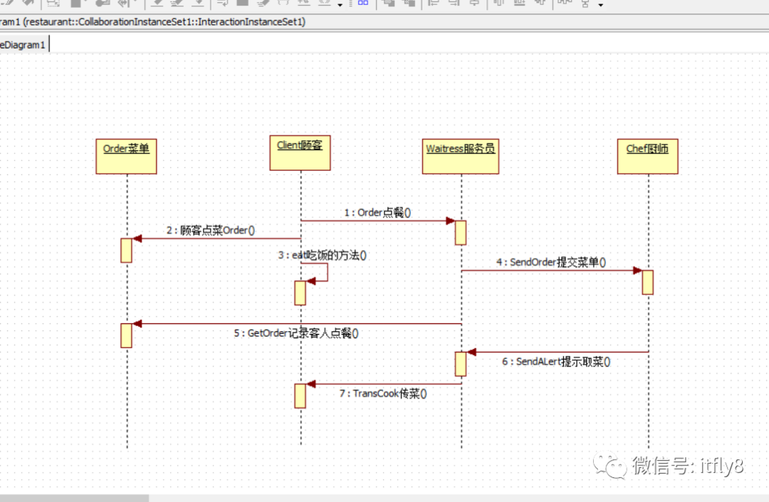 序列图描述类之间的关系,描述参与者自己的动态调用关系,每个参与者有一条垂直向下的生命线,用虚线表示,而参与者之间的消息,也从上到下表示其调用的前后顺序关系。
