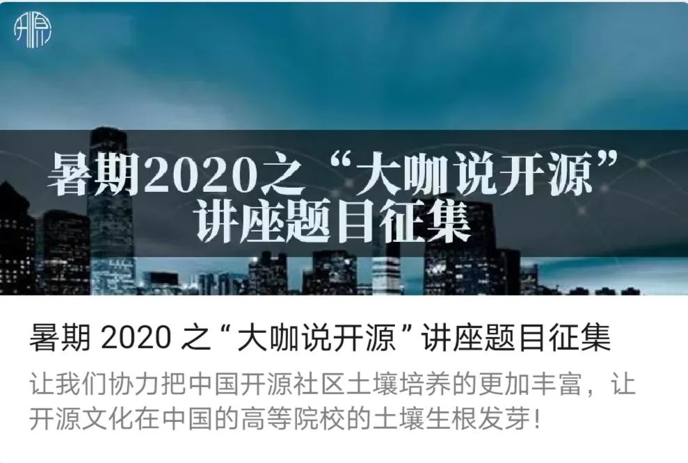 在“暑期2020”活动中,主办方联合“开源社”举办一系列“大咖说开源”讲座,为广大在校学生介绍开源理念,帮助在校学生深入了解开源文化、参与开源社区的方式方法。