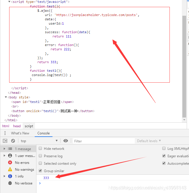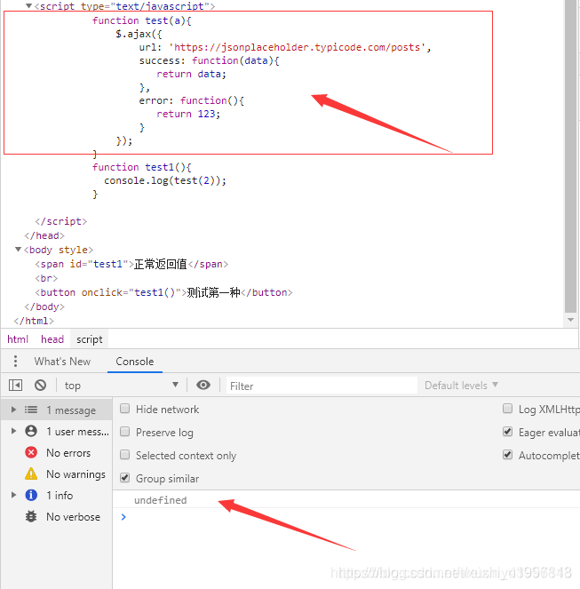 方法中,ajax不管是成功还是错误都有返回,但是我们调用后还是返回undefined,原因是: