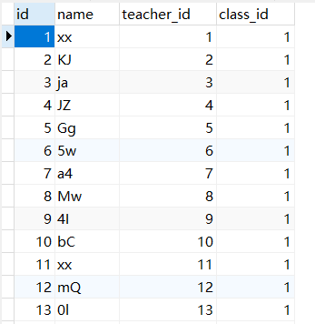 上表数据满足我们文章开头说的特点,根据 class_id 和 teacher_id 单个字段均无法唯一确定一条数据,只能联合两个字段,才能确定一条数据,并且设定 class_id 和 teacher_id 分别为两个普通索引。