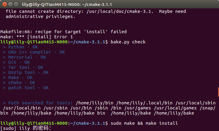 开始提示我没有 Cmake 安装教程 :https://www.cnblogs.com/photo520/p/9486144.html
