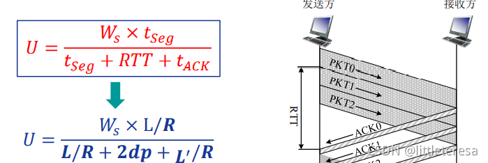 滑动窗口协议的信道利用率:Ws为发送窗口大小