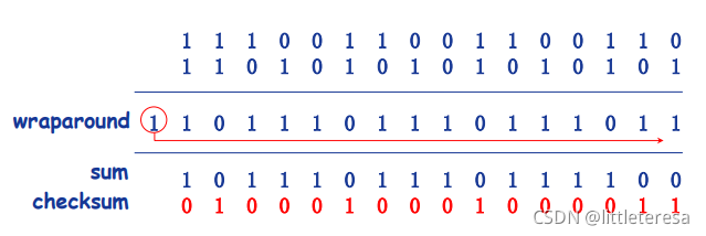 ❖发送方将段的内容视为16-bit整数。在计算校验和时,计算所有整数的和 ,进位加在和的后面,将得到的值按位求反,得到校验和。发送方将校验和放入校验和字段