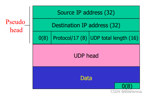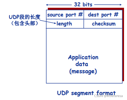 长度字段:UDP报文段中的字节数(首部+数据)