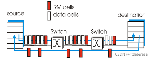 由发送方发送,交换机设置RM cell位(网络辅助):NI bit: 速率不许增长、 CI bit: 拥塞指示。 RM cell由接收方返回给发送方