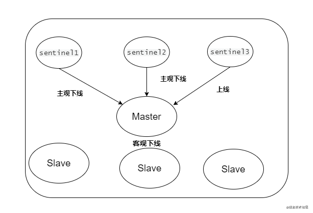 哨兵集群中各个实现通信后,就可以判定主库是否已客观下线。