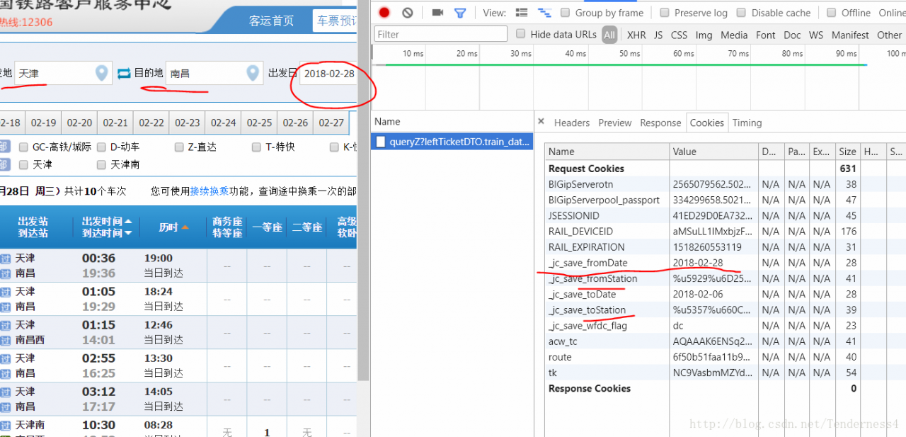 1. python trainticket.py 天津 南昌 2018-02-10