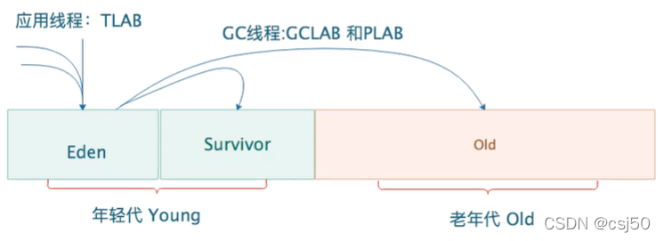 当线程为巨型对象分配空间时,不能简单在TLAB进行分配,TLAB(Thread Local AllocationBuffer,线程本地分配缓冲区),因为巨型对象的移动成本很高,而且有可能一个分区不能容纳巨型对象。