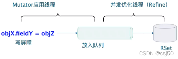 实际上除了Refine线程更新RSet之外,GC线程(young gc的Update RS阶段)或者Mutator也可能会更新RSet。(G1的young gc)