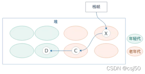 D是年轻代region,被C引用,C被X引用,他们分别在不同的region,这种情况下再使用cardtable就没那么好处理了。