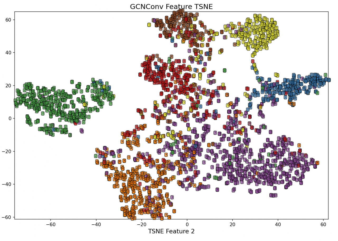 Cora数据集由2078篇机器学习领域的论文构成,每个样本点都是一篇论文,这些论文主要分为了7个类别,分别为基于案例、遗传算法、神经网络、概率方法、强化学习、规则学习与理论。在该数据集中,每篇论文都至少引用了该数据集中的另一篇论文,对每个节点所代表的论文,都由一个1433维的词向量表示,即该图上每个节点都具有1433个特征,词向量的每个元素都对应一个词,且该元素仅有0或1两个取值,取0表示该元素对应的词不在论文中,取1表示在。