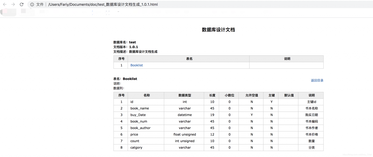 点击test启动,运行结果,然后在 fileOutputDir中设置的路径:/Users/Fariy/Documents/doc找生成好的数据库。然后打开的效果:
