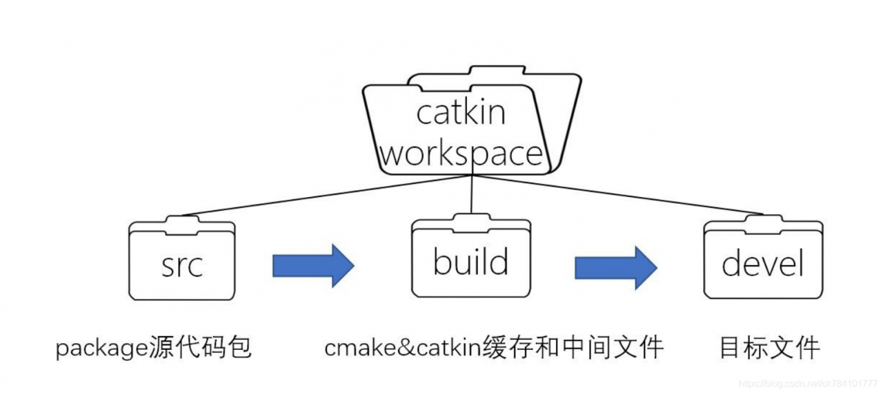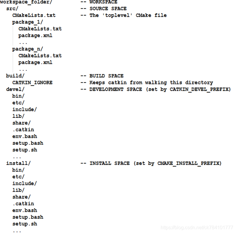 工作空间(work space)是ROS系统中存放工程开发相关的文件夹,其目录结构如下: