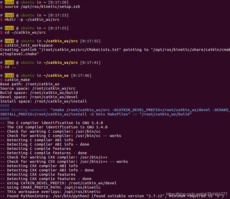 $ source ~/catkin_ws/devel/setup.bash #刷新坏境编译之后,catkin_make运行后终端输出文件部分解析