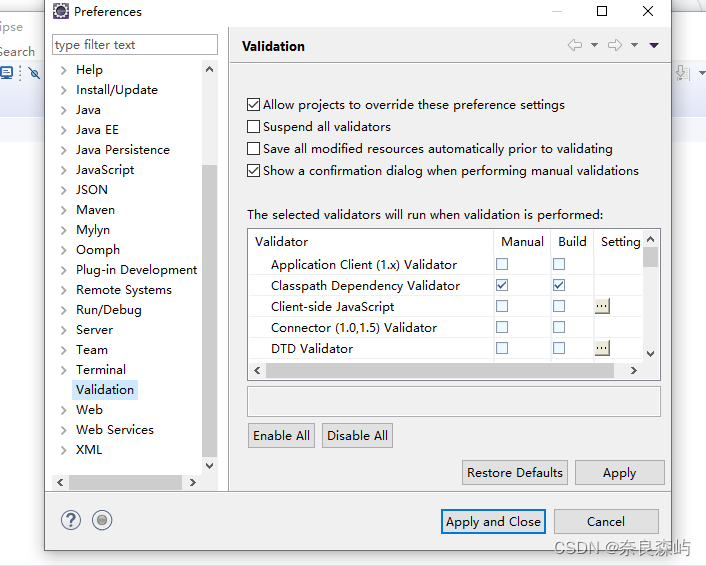 3.选择“Disable All”取消所有的勾勾,然后只勾起如图所示的勾勾,再点击“Apply and Close”即可