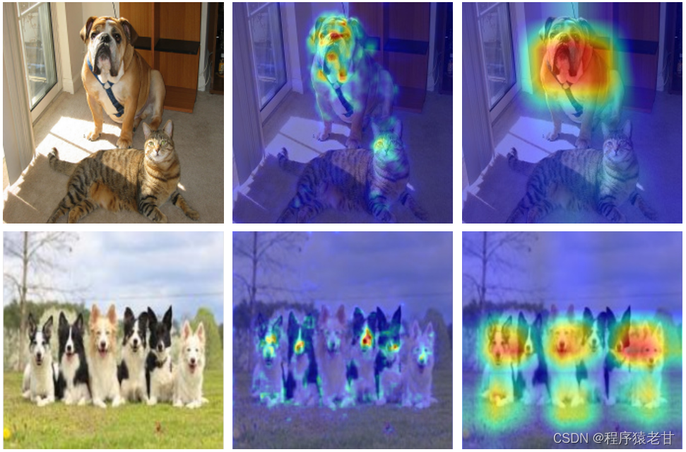 target_layers = [model.features[-1]]图2展示一个示例,基于VCG网络和layercam方法。第一列为原始图像,第二列为输出第11层特征结果,第三列最后一层结果。