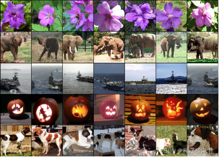 图1,基于特征向量计算的近似结果显示。可以看到每一行图像的语义内容关联。