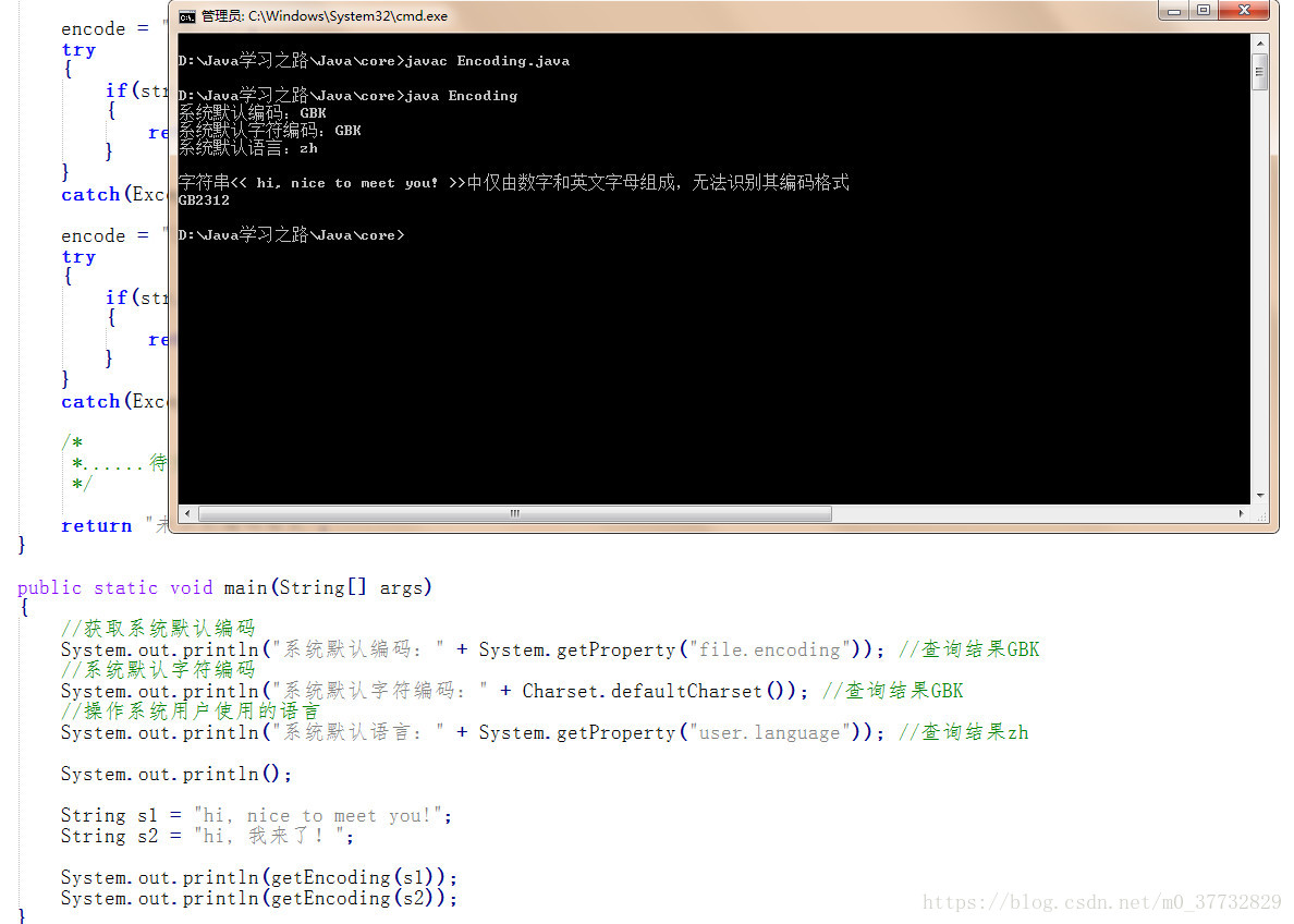 System.out.println("系统默认编码:" + System.getProperty("file.encoding")); //查询结果GBK
