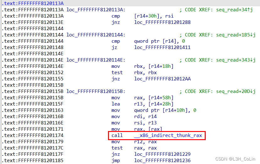 我们可以在IDA中打开vmlinux,找到执行start函数指针的位置(函数名为seq_read):